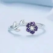 Anillo de Flor Púrpura, Plata de Ley 925, chapada en oro blanco, esmaltado a mano con circonitas – ajustable.