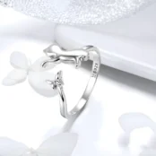 Anillo de Gato con Mariposa Plata de Ley 925, chapada en oro blanco – ajustable