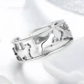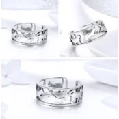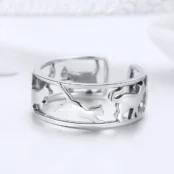 Anillo de Gato Saltando Plata de Ley 925, chapada en oro blanco – ajustable