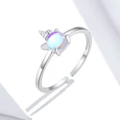 Anillo de Gato Unicornio Plata de Ley 925, chapada en oro blanco, con ópalo – ajustable