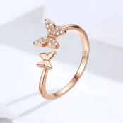 Anillo de Mariposas, Plata de Ley 925, chapada en oro rosa, con circonitas – ajustable.