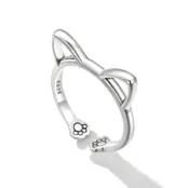 Anillo de Orejas de Gato Plata de Ley 925, chapada en oro blanco – ajustable