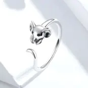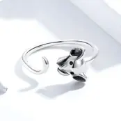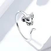 Anillo de Ratón Plata de Ley 925, chapada en oro blanco, con ojos de circonitas negras – ajustable