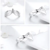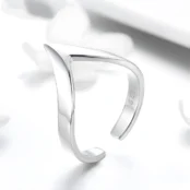 Anillo en Forma de V, Plata de Ley 925, chapada en oro blanco – ajustable.