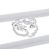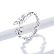 Anillo Hojas Brillantes Plata de Ley 925, chapada en oro blanco, con circonitas – ajustable