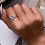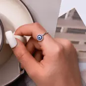 Anillo Ojo de Alá, Plata de Ley 925, chapada en oro blanco, con nazar esmaltado a mano y circonitas – ajustable.