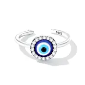 Anillo Ojo de Alá Plata de Ley 925, chapada en oro blanco, con nazar esmaltado a mano y circonitas – ajustable