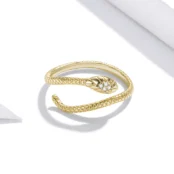 Anillo Serpiente Cobra Plata de Ley 925, chapada en oro amarillo, con circonitas blancas y verdes – ajustable
